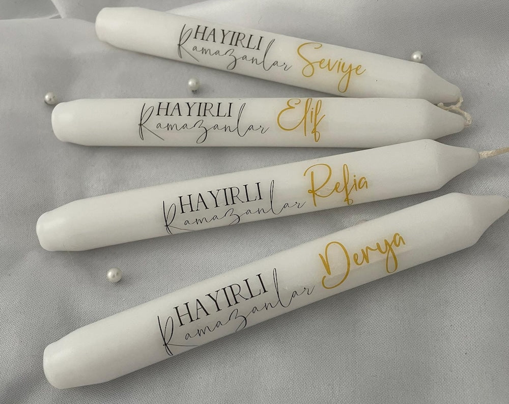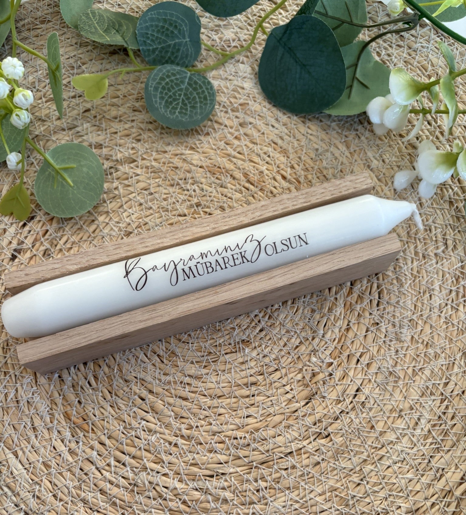 Schenke ein Stück Freude mit unserer liebevoll gestalteten Kerze. Diese zarte weiße Kerze, mit verschiedenen Aufschriften, liegt optional sicher in einem minimalistischen Holzhalter. Sie ist ein wunderbares Geschenk für besondere Anlässe wie Ramadan, Bayram, Eid, Kandil oder einfach, um jemandem ein Lächeln ins Gesicht zu zaubern.
