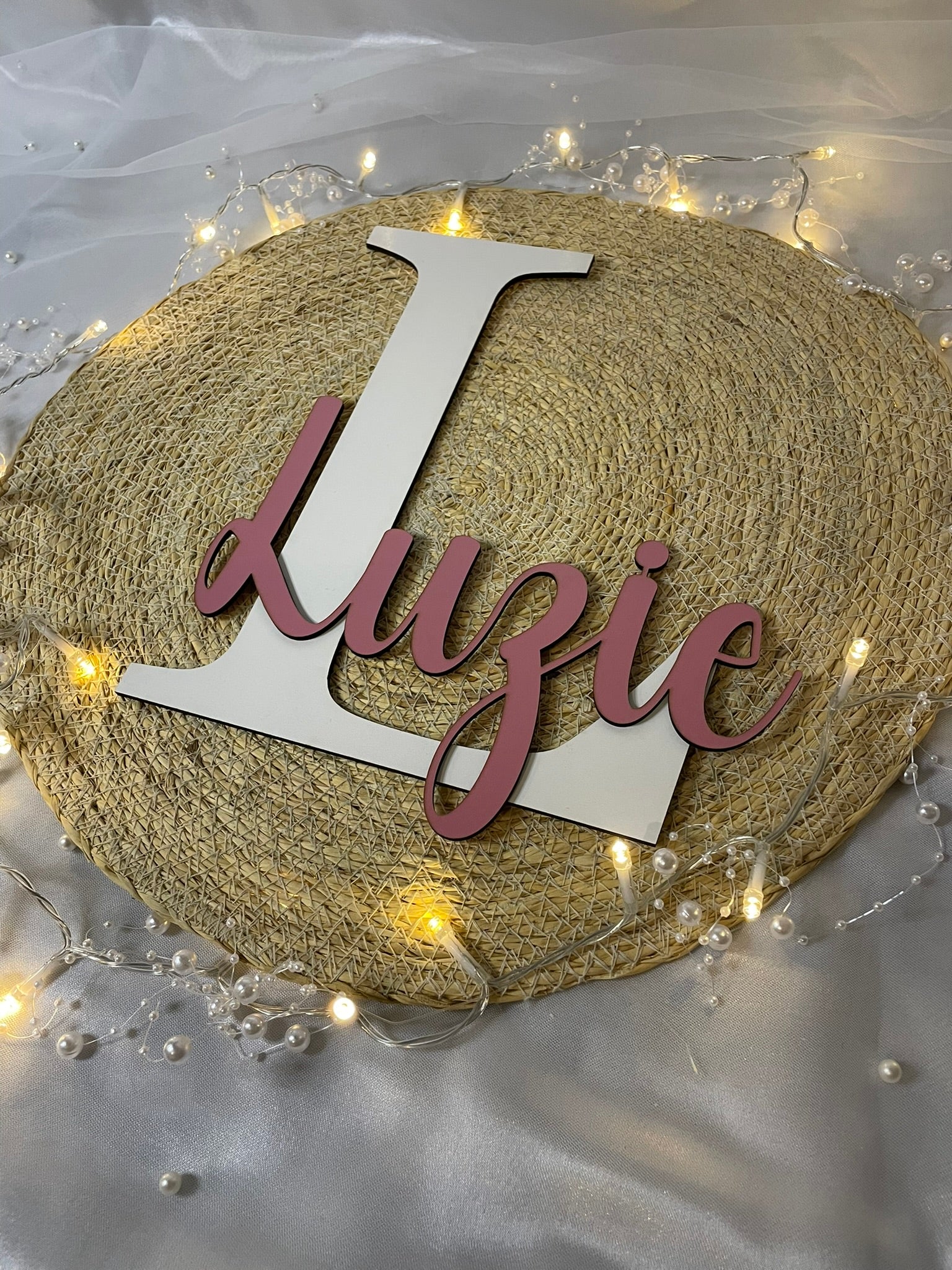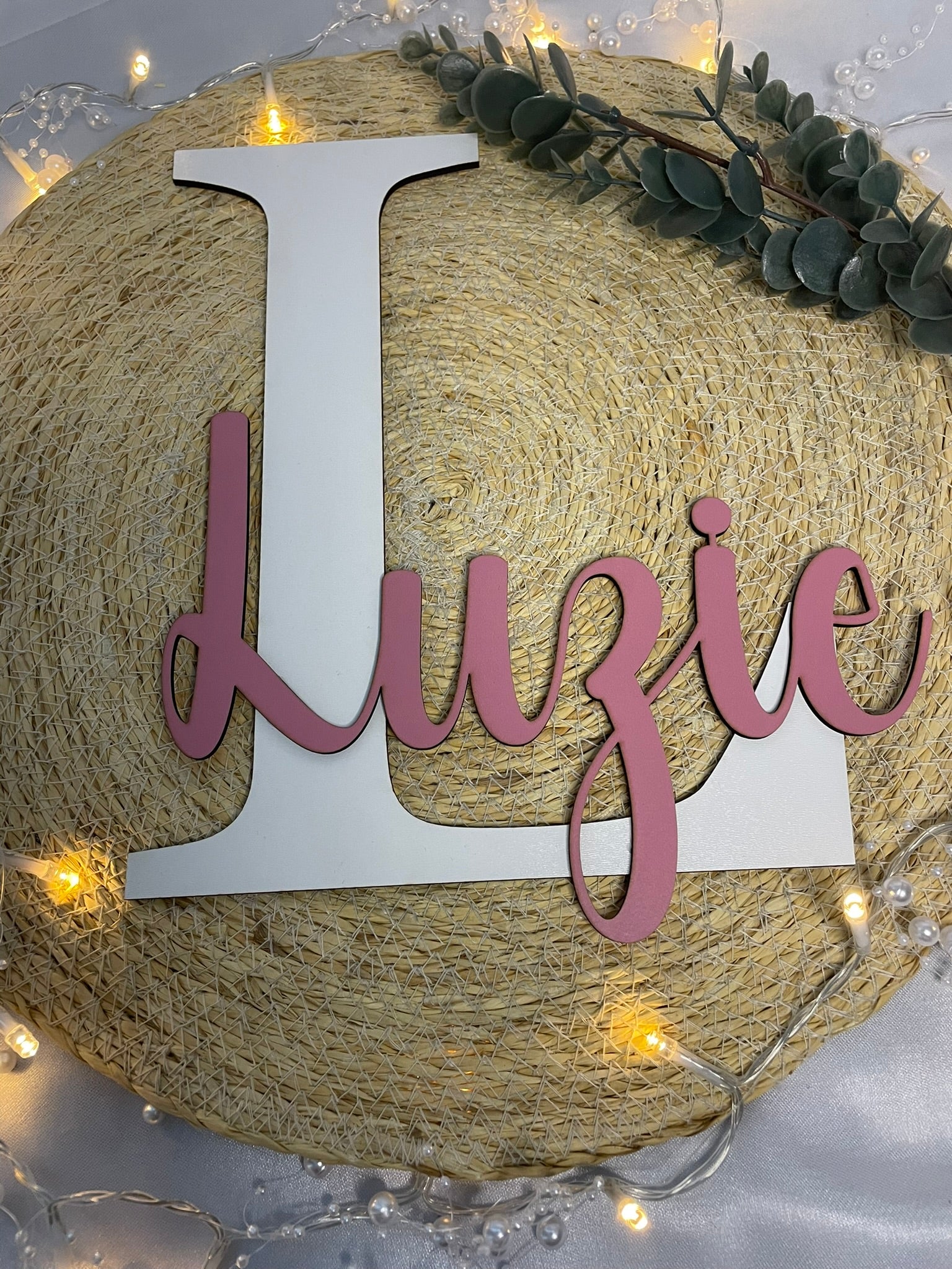Gestalte dein Zuhause individuell mit unserem hochwertigen Holzschild, das deinen Namen oder den deiner Liebsten in einem modernen Design zeigt. Der große Buchstabe im Hintergrund bildet eine stilvolle Basis, während der filigrane Schriftzug im Vordergrund das Design perfekt ergänzt. Ideal als Geschenk zur Geburt, Taufe, für die Kinderzimmerdekoration oder für die Hochzeit.