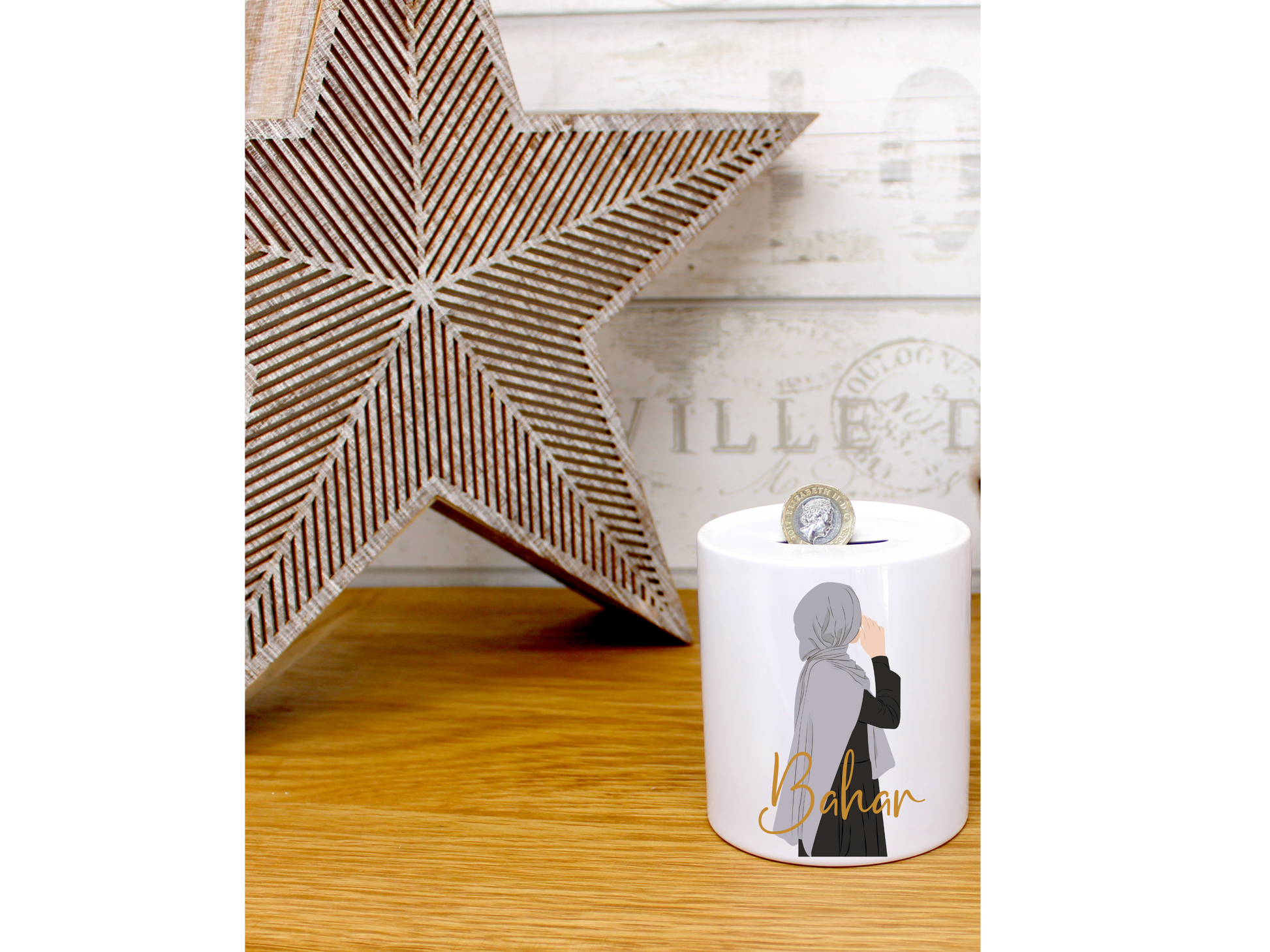 Personalisierte Spardose für Hijabis, Kopftuch, Hijab, Moslem, Muslim